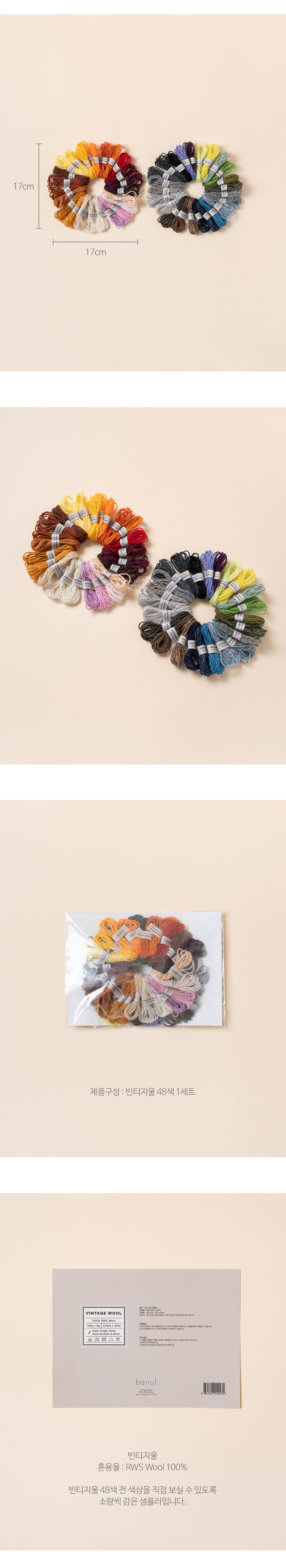 ![]() + 제품구성: 빈티지울 샘플러 1세트(48컬러) + 사이즈: 가로 17cm x 세로 17cm (±1cm) + 재질: 실 - RWS Wool 100%, 와이어키링 - 금속 + 선택의 폭을 넓힌 총 48가지의 다양한 컬러웨이로, 전 색상을 직접 보실 수 있도록 빈티지울을 소량씩 감은 샘플러입니다. + 와이어키링에서 원하시는 샘플 색상을 빼서 사용할 수 있습니다. + 전 색상을 보시거나 배색 색상을 비교해 볼 수 있습니다. + 빈티지울의 실제 색감과 촉감을 느껴보실 수 있고 배색 작품을 위한 색상 조합에 적극 활용해 보세요. + 샘플러에 붙은 개별 스티커가 떨어질 수 있으며, 이는 하자가 아닙니다. ![]() ![]() ![]() ![]() ![]() |