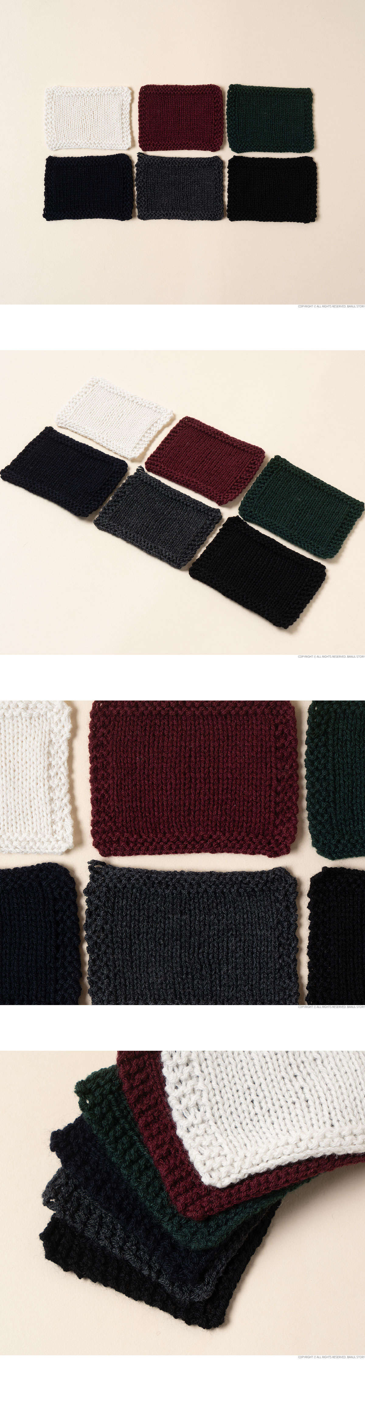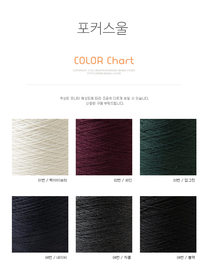+ 사용바늘: 2합으로 된 실을 다시 2합하여 대바늘 4mm (스와치참조) + 혼용율: wool 100%