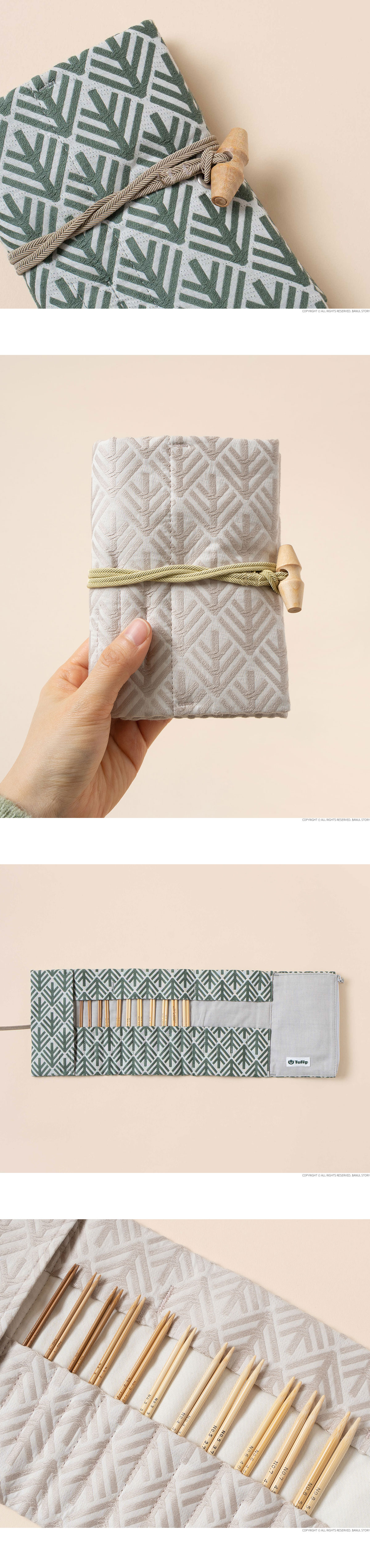 + 케이스는 200년 이상의 역사를 가진 일본 서부 기타하리마 지역의 ‘반슈오리(播州織)’ 원단으로 제작되었습니다. 내구성이 뛰어난 자카드 원단과 부드러운 트윌 원단을 사용하여 히로시마에서 정성스럽게 봉제해 사용하기 편리한 바늘 케이스로 완성했습니다. + 케이스 디자인은 싱그러운 녹음이 우거진 여름날 나뭇잎 사이로 쏟아지는 햇살과(그린 컬러), 눈 내린 겨울철 나뭇가지 사이로 비치는 부드러운 햇살(베이지 컬러)인 '코모레비(木漏れ日)'에서 각각 영감을 받았습니다. + 케이스 색상만 다르고 모든 구성품은 동일합니다.