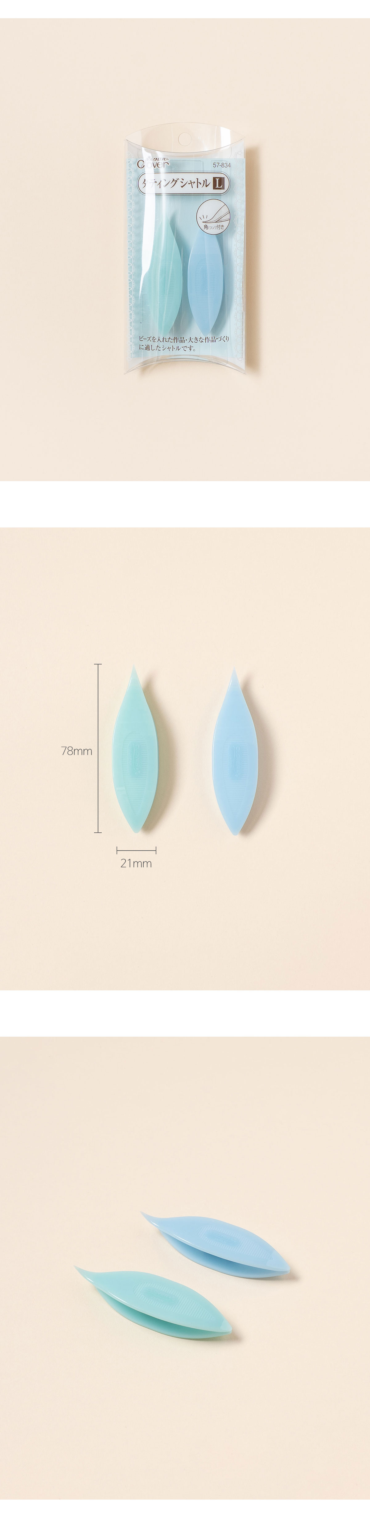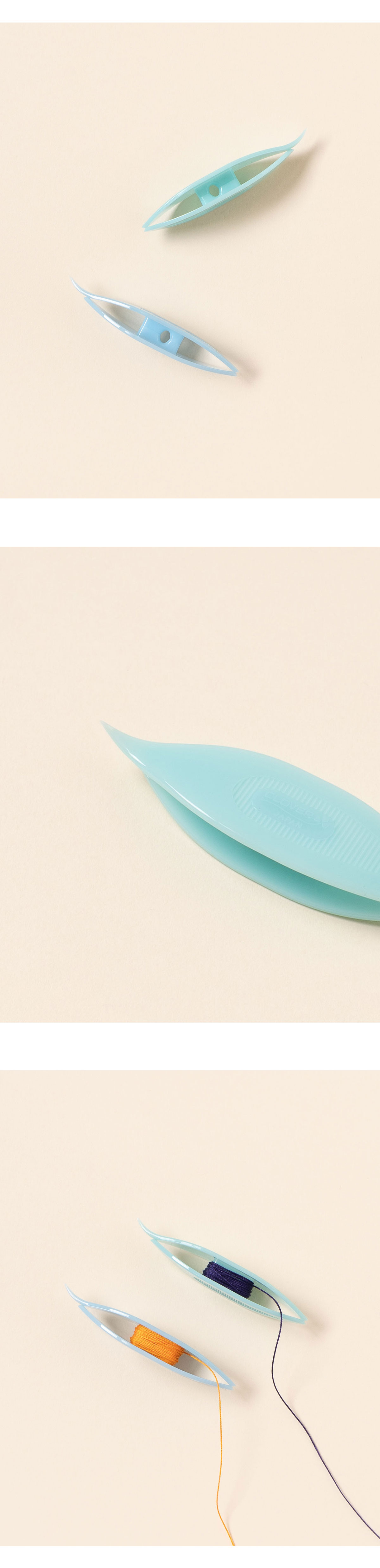 + 기존 셔틀보다 감을 수 있는 실의 양이 1.8배 많아 비즈 태팅이나 큰 작품, 굵은 실을 작업하기에 편리합니다.